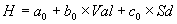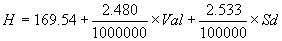 Stabilirea functie de regresie multipla H=f(Sd, Val)